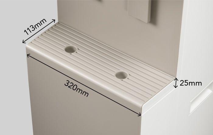 可拆卸的底部托盘,便于清洁,容量为0.42升,用于收集日常取水时滴下的水